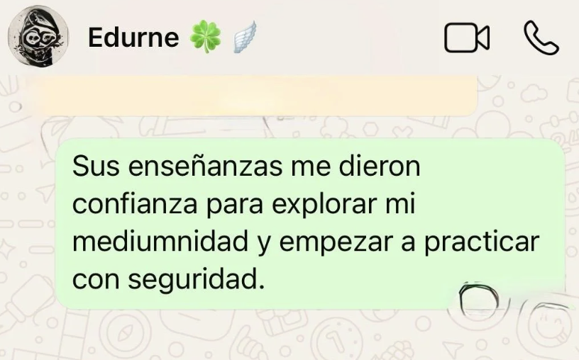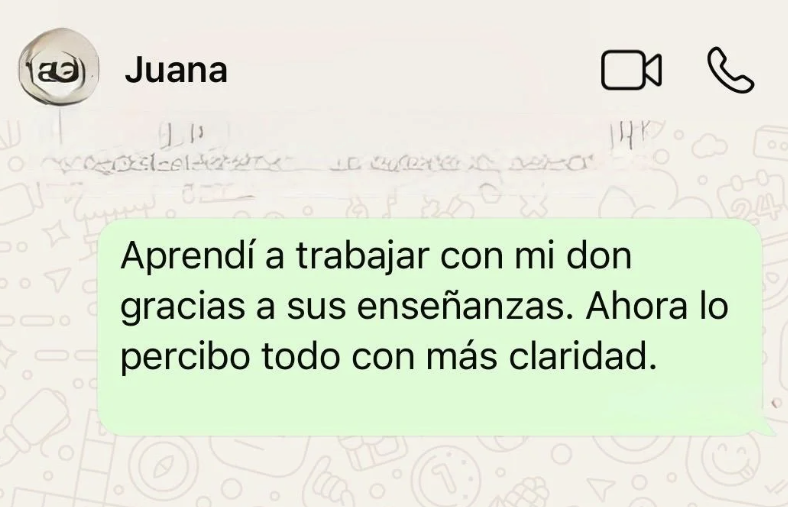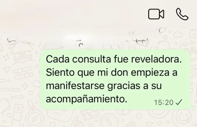 Hoy acompaño a quienes sienten el llamado a despertar su don y abrir su canal espiritual. Les enseño a fortalecer su intuición, reconocer las señales y usar la mediumnidad para conectar con la guía espiritual que siempre ha estado con ellos.